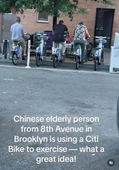 一個稱為nyc.tribe的Intasgram用戶發現有一班華裔民眾,其中又以耆老為主在8大道附近的7大道一列停放著的城市單車上騎乘後,該名網民攝下一個短視頻擺上Intasgram留言稱:來自布碌崙8大道的華裔長者正在利用城市單車運動,真是好主意!有關視頻在Intasgram上有超過萬人瀏覽,並有近400人留言,並有70餘人轉發!