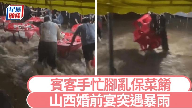 山西婚宴遇暴雨秒變「流水席」。微博@河北報哥
