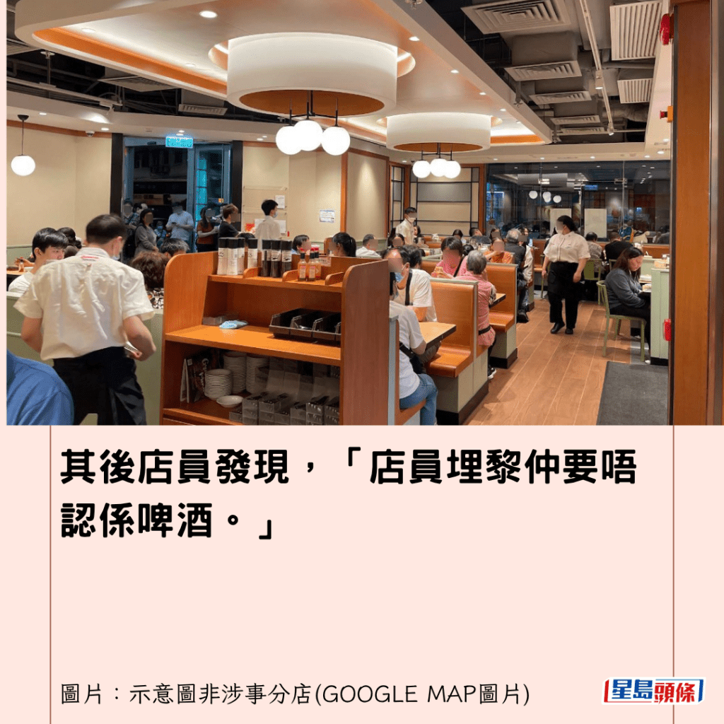 有網民昨日(1日)在連鎖日本意式餐廳「薩莉亞」(Saizeriya),遇上缺德食客,該名阿叔自攜酒精飲品,以半秒速度偷嚐仲加添,目擊網民形容手法飛快如「遇到魔術師」,指「店員埋黎仲要唔認」。