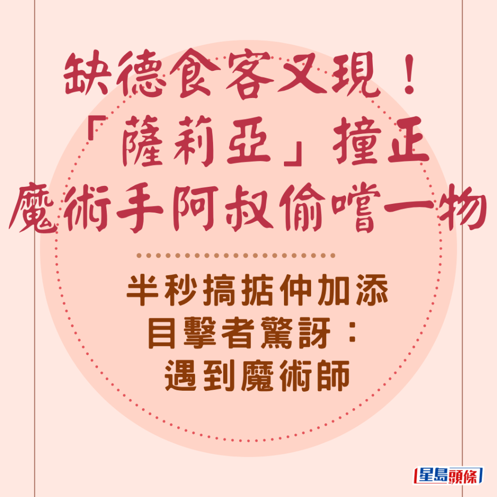 缺德食客又現!「薩莉亞」撞正魔術手阿叔偷嚐一物 半秒搞掂仲加添 目擊者驚訝:遇到魔術師↓↓↓↓