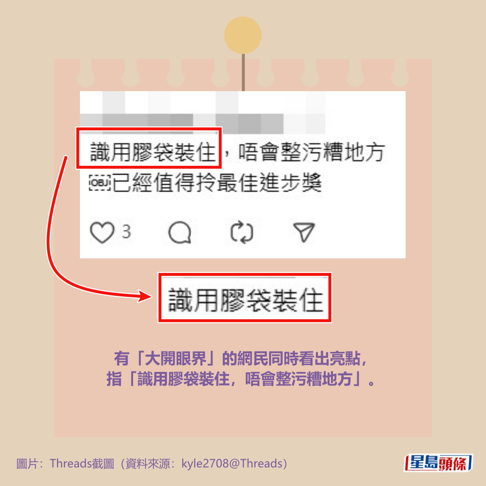 有「大開眼界」的網民同時看出亮點,指「識用膠袋裝住,唔會整污糟地方」;還有人笑言「個阿叔咁豪邁」、「地鐵獎門人」、「即刻食夠新鮮」、「下次開個榴槤齊齊食」。