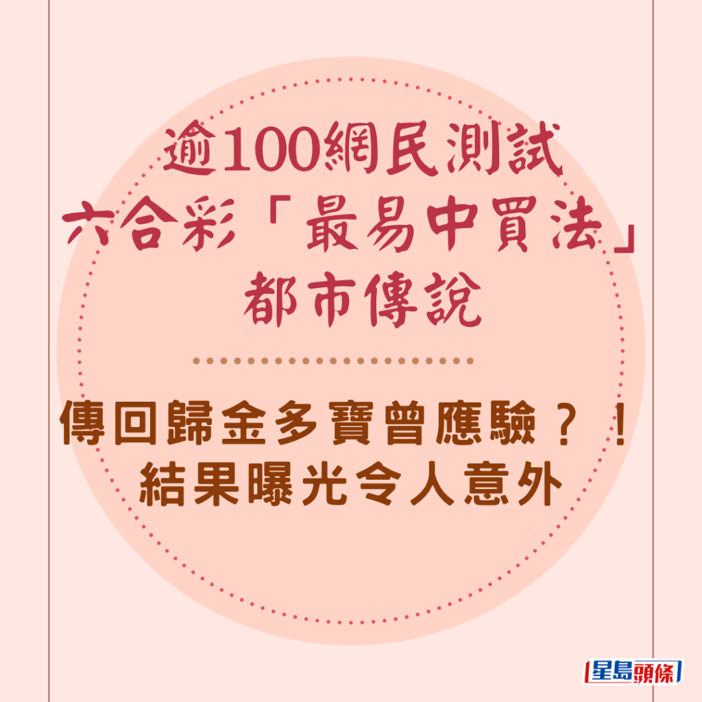 傳回歸金多寶曾應驗?!逾100網民測試六合彩「最易中買法」都市傳說 結果曝光令人意外↓↓↓↓
