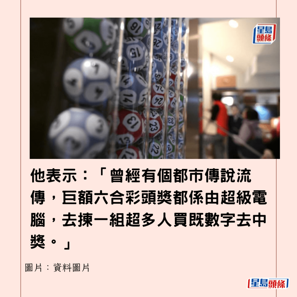 有網民昨下午發帖發起實測一個六合彩都市傳說,他表示:「曾經有個都市傳說流傳,巨額六合彩頭獎都係由超級電腦,去揀一組超多人買既數字去中獎。」