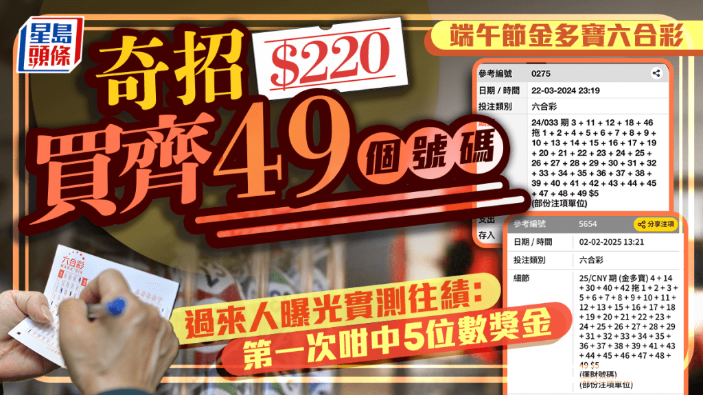同場加映:奇招$220買齊49個號碼 過來人曝光實測往績:第一次咁中5位數獎金↓↓↓↓