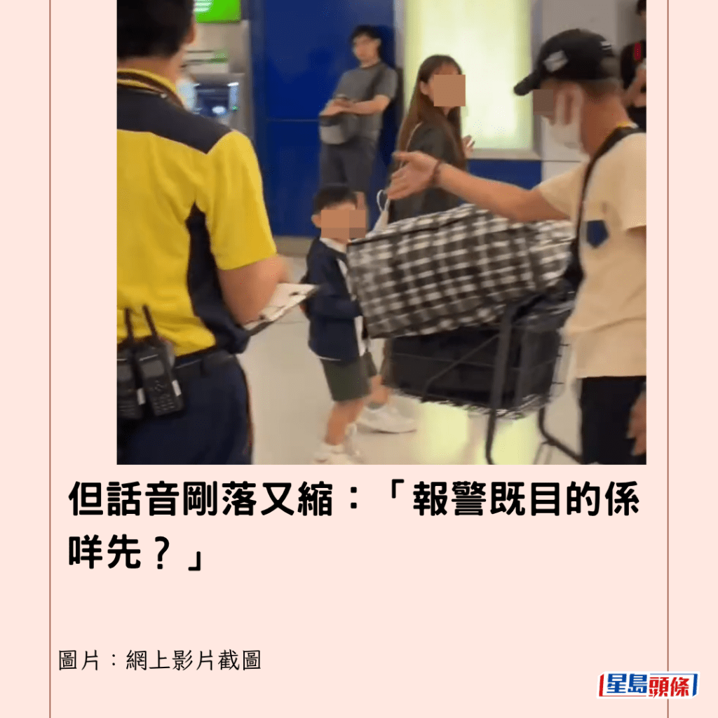 阿叔未有正面回應,再指手劃腳揚言:「我依家唔係……我勸你,報警。」但話音剛落又縮:「報警既目的係咩先?」港鐵職員繼續耐心向他解釋行李尺寸規定:「你係咪搭車先,因為我想同你解釋吓……」