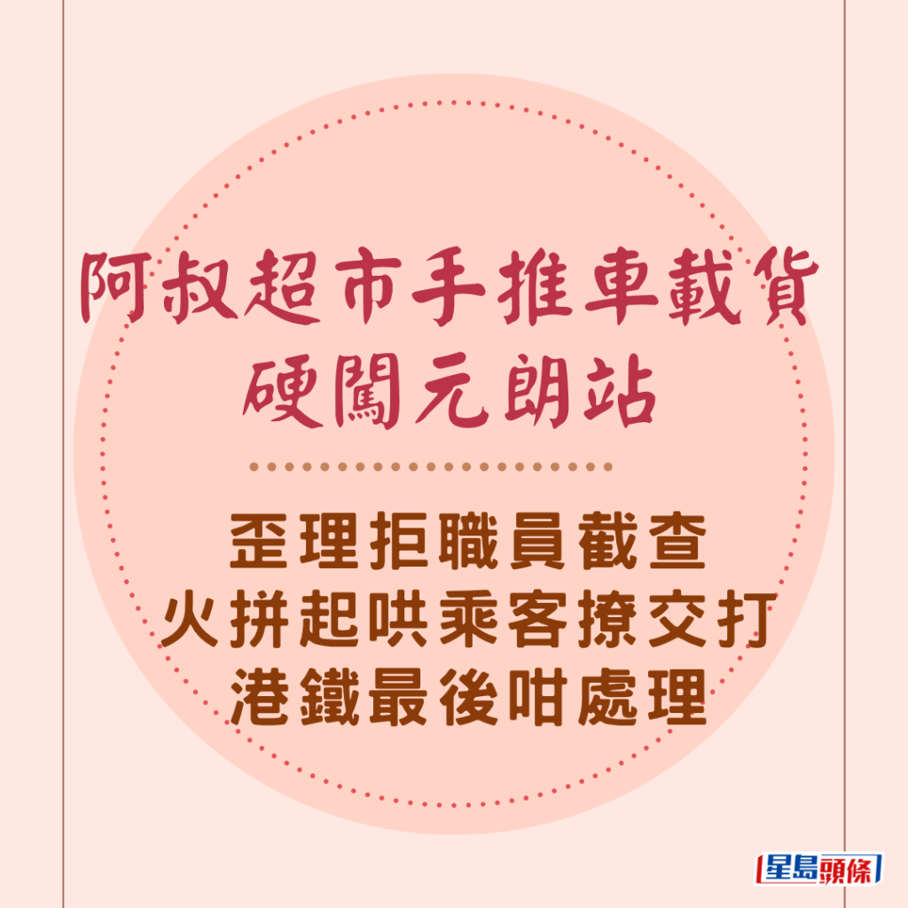 阿叔超市手推車載貨硬闖元朗站 歪理拒職員截查 火拼起哄乘客撩交打 港鐵最後咁處理↓↓↓↓
