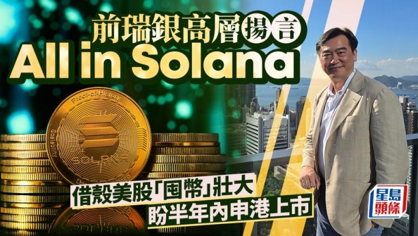 加密貨幣熱潮備受資本市場關注,過去縱橫本港新股市場的前瑞銀全球資本市場部亞洲區總裁朱俊偉,亦加入新領域推動Solana(SOL)的數碼資產儲備(DAT)模式發展,近期更藉此在美股借殼上市。朱俊偉揚言要「All in Solana」,期望把握新興投資主題,並有意當公司達到市值門檻,「只要港交所唔講唔可以」,或半年內來港申請雙重上市。