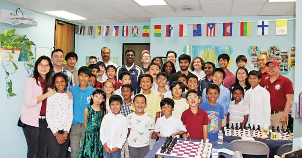 現任國際象棋世界冠軍印度棋手古凱什 (D.Gukesh) (後排右7)到訪KLC,與師生合影。 受訪人提供