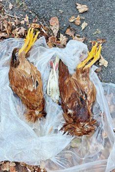 SPCA在臉書發文指出,兩隻公雞屍體被裝在塑膠袋內,白鴿則在附近被發現。據報道,今年該地區已發現10宗類似案件,包括4月兩隻被屠宰的鳥類被裝入垃圾袋棄置。