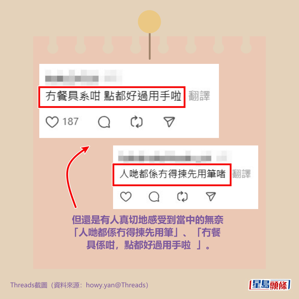 •網民乙:用筆好過手,食完仲要損手指仲…