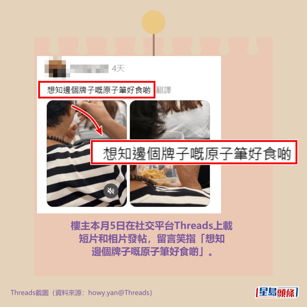 樓主本月5日在社交平台Threads上載短片和相片發帖,留言笑指「想知邊個牌子嘅原子筆好食啲」。