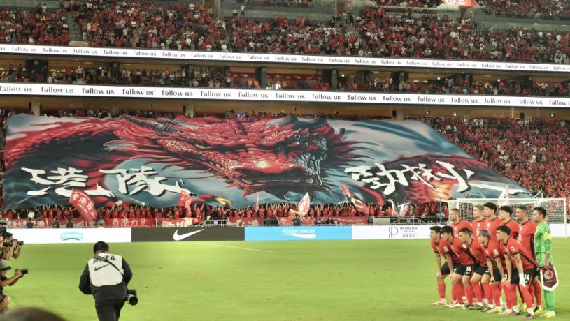 港隊對印度的賽事,賽前有球迷展示巨型橫幅(Tifo),震撼全場。