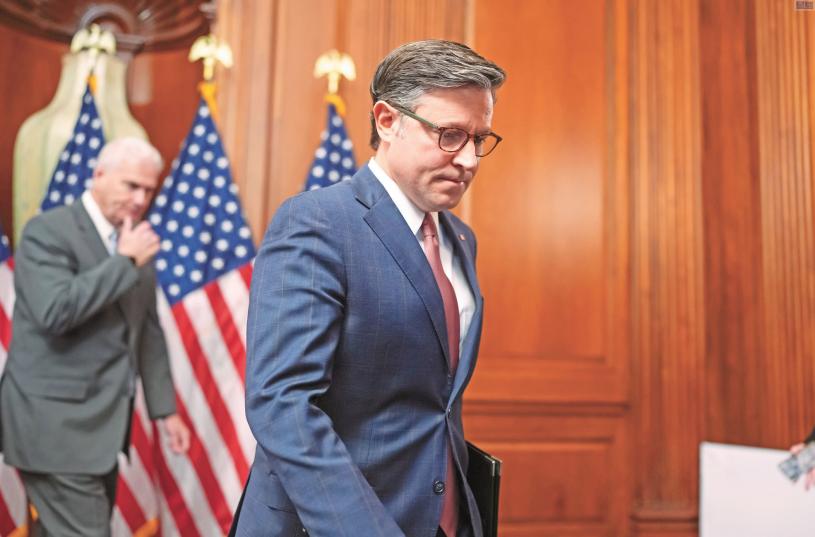 眾議院議長約翰遜10日出席記者會後離開。美聯社