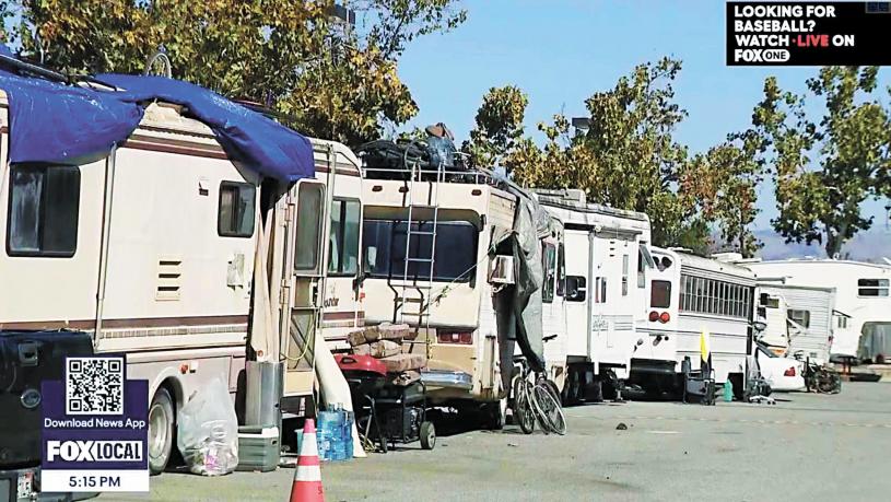 阿爾馬登站(Almaden Station)停車場的露營車。KTVU電視畫面