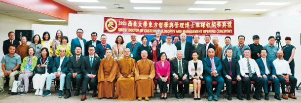 西來大學「東方哲學與管理博士學位課程」開學典禮嘉賓大合照。西來大學提供