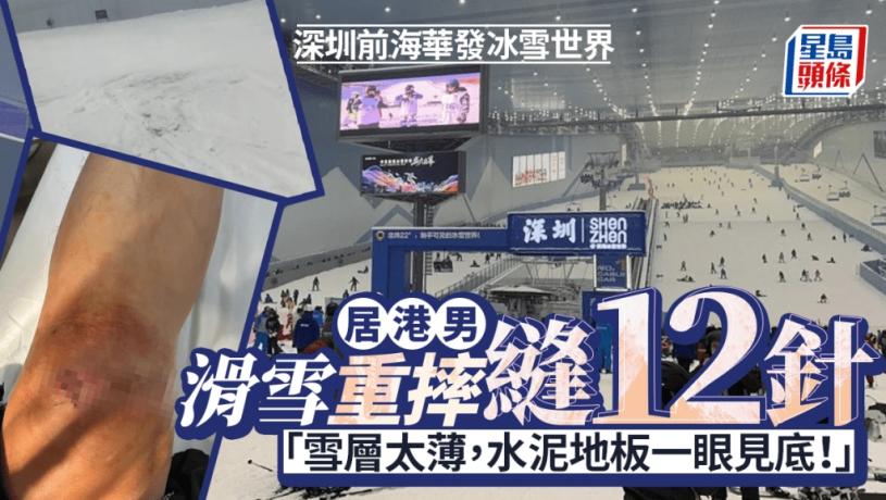 號稱全球最大室內滑雪場的前海華發冰雪世界,開幕翌日即傳出嚴重意外,有常居香港的男子,疑因雪道冰層太薄,水泥地板一眼見底,導致雪板被卡,摔倒後膝蓋被割開要縫12針。