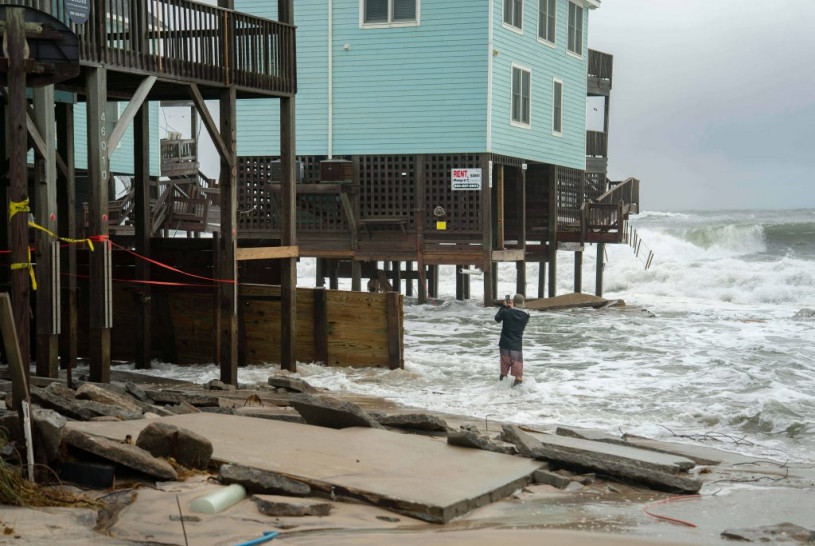 北卡羅來納州巴克斯頓,一位房主在暴風雨過後拍照。美聯社