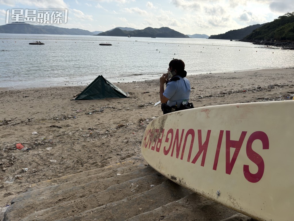 現場銀線灣有目擊者表示於今日凌晨4時許,已見女事主在泳灘出現,當時並未為意。所見女死者身穿泳衣,警方用帳篷遮蔽遺體,並在沙灘附近的長凳上檢獲一批屬於女死者雜物,包括背囊、拖鞋及兩罐啤酒等。其間失蹤人口調查組人員亦在場調查。女死者的兩名家屬到場認屍,死者的女兒表現激動,傷心痛哭。