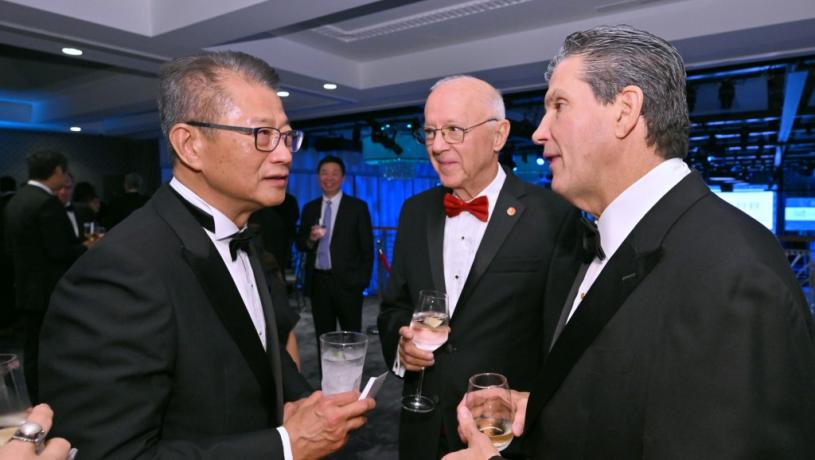 陳茂波(中)出席美中關係全國委員會年度晚宴,並與嘉賓交流。