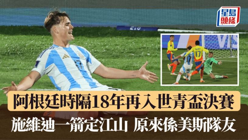 周三世青盃4強,阿根廷U20憑鋒將施維迪(Mateo Silvetti)一箭定江山,1:0擊敗哥倫比亞,繼2007年後再次殺入決賽,將會與首入決賽的摩洛哥爭冠。19歲的施維迪目前於美職國際邁亞密效力,是美斯的隊友。
