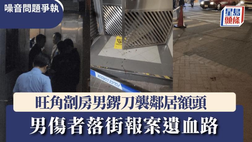 今日(16日)凌晨2時許,旺角先施大廈內某一劏房單位男住戶疑因不滿噪音滋擾,與一名男鄰居發生爭執,繼而用鎅刀施襲,令對方額頭受傷流血。黎志偉攝