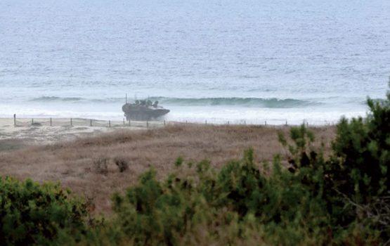 從5號公路上可見海軍陸戰隊在潘德頓營進行兩棲作戰車輛訓練。洛杉磯時報