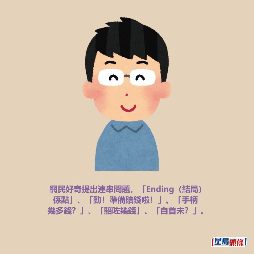 網民好奇提出連串問題,「Ending(結局)係點」、「勁!準備賠錢啦!」、「手柄幾多錢?」、「賠咗幾錢」、「自首未?」。