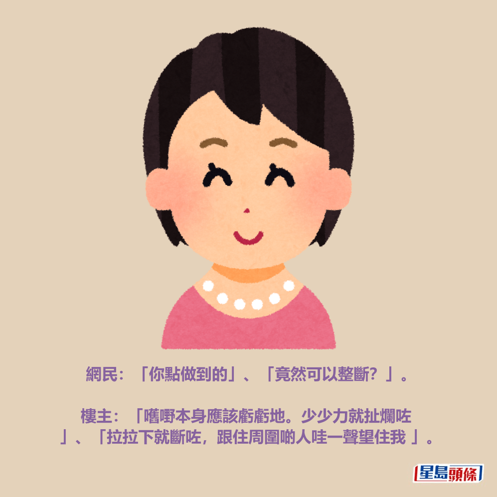 •網民:「你點做到的」、「竟然可以整斷?」。