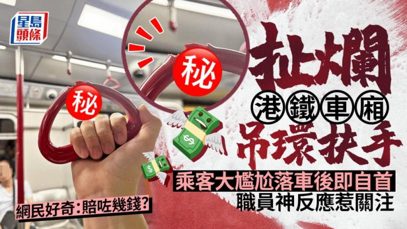 扯爛港鐵車廂吊環扶手 乘客尷尬落車後自首 職員神反應惹關注 網民好奇:賠咗幾錢?