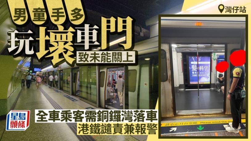 事件發生於今日(18日)下午4時,警方接獲港鐵職員報案,指一輛往柴灣方向的港島綫列車車門未能關上,需要將車駛回柴灣車廠作檢查。職員翻查車廂閉路電視,發現一名年約12至16歲的非華裔男童在下午3時08分於灣仔站上車,之後用左手阻礙車門關上。警方將案件暫時列作刑毀案處理,交由東區警區刑事調查隊跟進,暫時未有人被捕。消息指,涉事的男童當時身穿啡色衫及卡其色褲,穿白色鞋,戴黑色眼鏡,孭黑色書包,至於未能運作的港鐵車門,所需的維修費大約要3萬元。