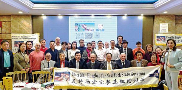 馬宏寶的華人支持者18日在法拉盛舉辦競選籌款活動,近百人高喊「馬宏寶,得勝」口號。