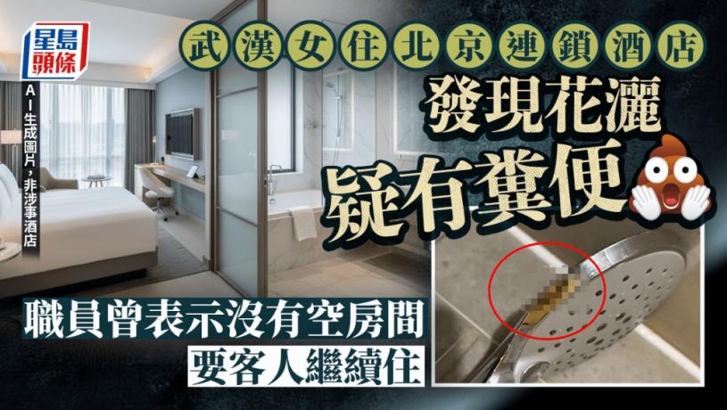 住酒店除關注價錢,衞生是另一關鍵條件。近日,有內地旅客入住北京一連鎖酒店,竟發現浴室花灑疑沾有糞便穢物。