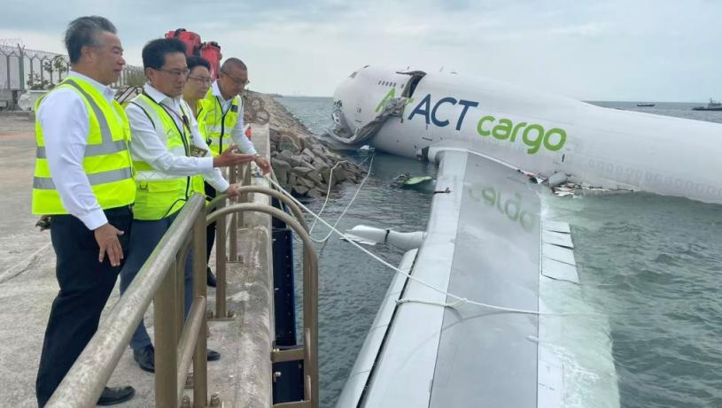 機場緊急應變中心即時啟動並展開救援工作。涉事貨機上的機組人員由消防安全救出。巡邏車上的機場保安人員由消防於水底救起,惟不幸分別於現場及被送往北大嶼山醫院搶救後證實不治。 機場北跑道因事件須暫時關閉,中跑道及南跑道維持運作,航班運作不受影響。