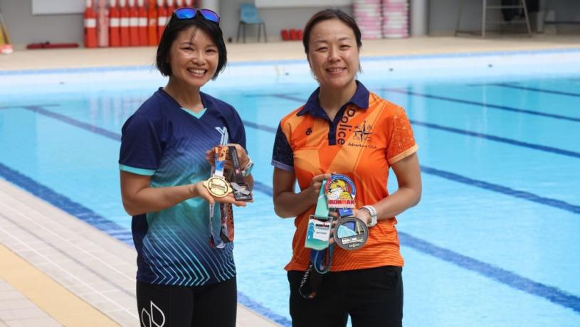 除了李銳明,警隊中還有另一位三鐵好手——元朗警區軍裝巡邏小隊警員周佩欣。在網上不難搜尋到她的亮眼紀錄:自二零零三年加入警隊後,憑藉出色體能考入反恐特勤隊,更兼任體能教官。她曾代表警隊參與粵港澳大灣區警察運動會三鐵賽,並於全國公安系統武裝越野登泰山比賽中奪冠。二零一四年,她以破大會紀錄的12小時52分完成毅行者百公里賽事,更在多項本地大賽中封后。