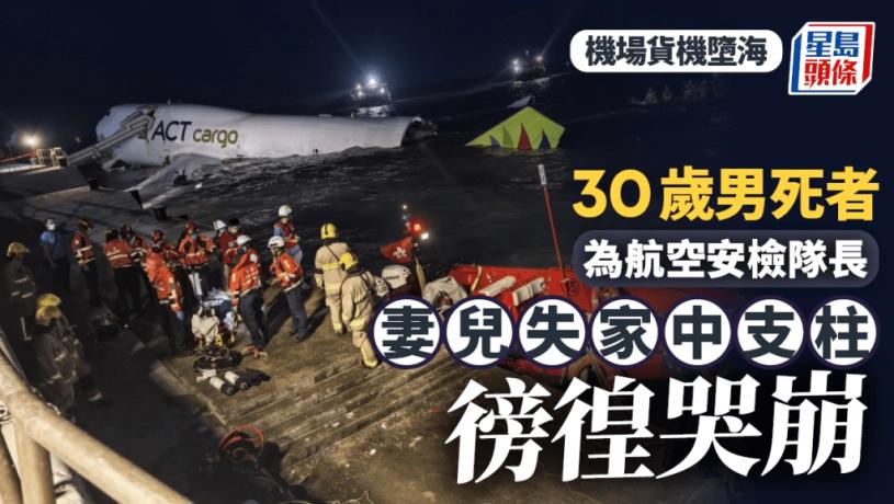 香港國際機場今日(20日)凌晨時分發生貨機滑出海面意外,兩名地面巡邏人員不幸離世。機管局指41歲姓何死者為航空安檢督導,而30歲姓陳死者為航空安檢隊長,兩人在機場保安有限公司任職超過12年及7年,工作為監督及執行日常停機坪出入管制工作。據工權會表示,30歲姓陳死者為家中經濟支柱,與太太育有一名年幼子女。陳太得悉噩耗後大受打擊,相信有一段時間無法工作。