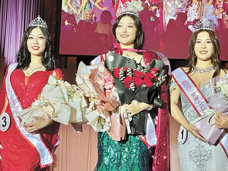 2025年華埠小姐選美揭曉,6號佳麗周淩宇(中)奪桂冠、亞軍1號佳麗安洪銳(右)、季軍三號佳麗黃佳儀(左)。 梁敏育攝