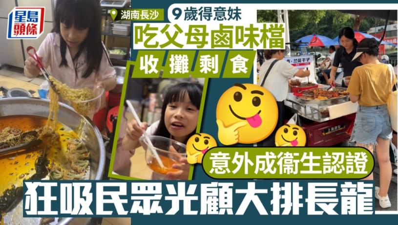 湖南長沙有鹵味攤小販,國慶期間收攤時,9歲女兒趁機掃光父母賣剩的小食及泡麵,影片被網民大讚可愛,覺得攤主敢給女兒吃自家剩食,反映食品乾淨衛生有保證。影片累計已逾1400萬人次瀏覽,吸引大量民眾光顧該檔鹵味攤,檔主更要另找更闊落地點容納暴增客群。