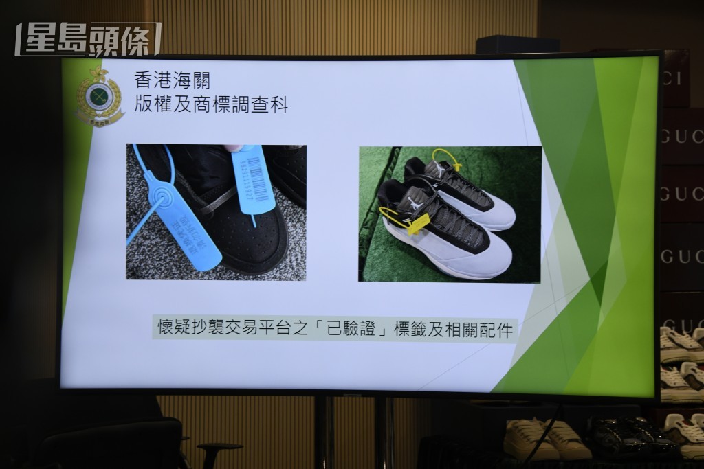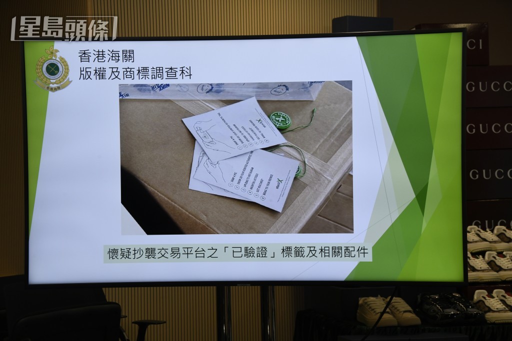 海關在行動中亦發現,檢獲的冒牌波鞋連同其他配件,這些配件涉抄襲不同國際知名奢侈品交易平台的已驗證標籤或索帶等,試圖誤導消費者以為購得的是經交易平台驗證的真貨。另外,今次檢獲的冒牌波鞋當中,更有尚未推出市場,或剛推出市場一至兩個星期的款式,可見不法分子對市場需求有一定掌握,快速將相關流入市面應市。