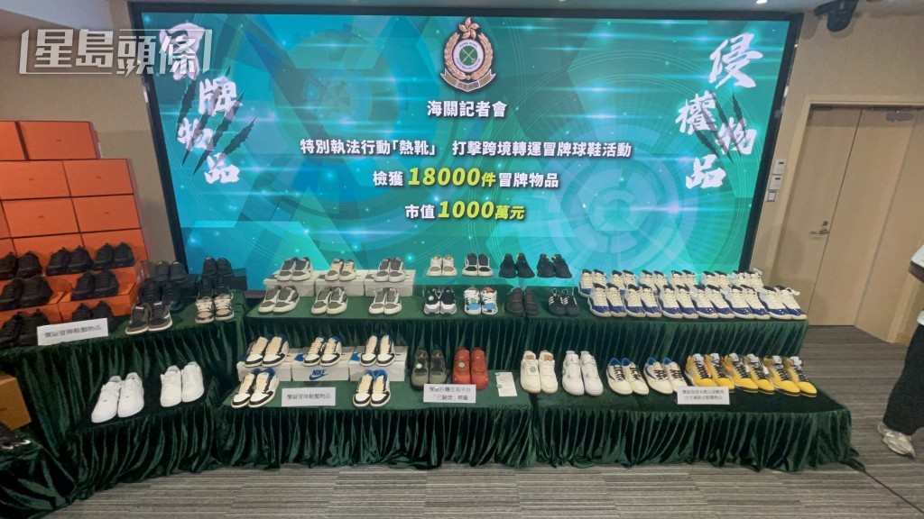 香港海關採取特別行動打擊跨境轉運冒牌波鞋活動,檢獲1.8萬件冒牌物品,市值約1,000萬元;相信這些冒牌物品主要運住歐美等地,並拘捕2名入境貨車司機。