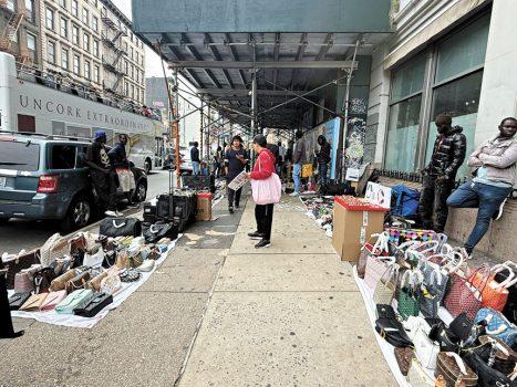 兩年來,越來越多無牌小販佔用了堅尼路出售冒牌商品。 本報資料照