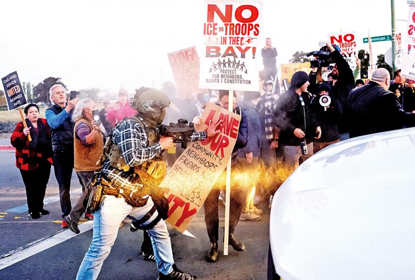日前傳出特朗普政府調派逾百名聯邦人員來灣區,準備大規模移民執法行動,大批示威者周四清晨聚集屋崙河口通往阿拉美達海岸防衛隊島(Coastal Guard Island)唯一入口外,圖阻止聯邦人員進入。期間爆發多次推擠與混亂,氣氛一度緊張,聯邦人員發射弦光彈與胡椒噴霧彈驅散人群,據報至少兩人受傷。