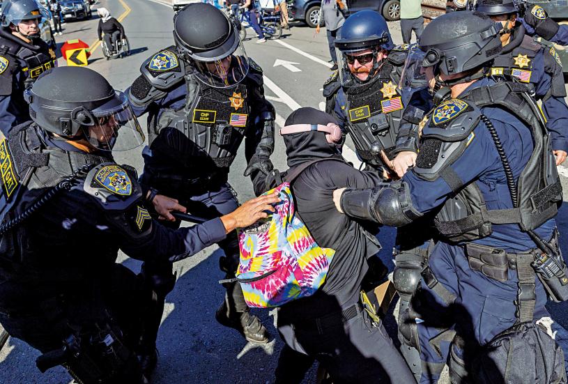 一名示威者被加州公路巡警制服。Stephen Lam/三藩市紀事報/美聯社