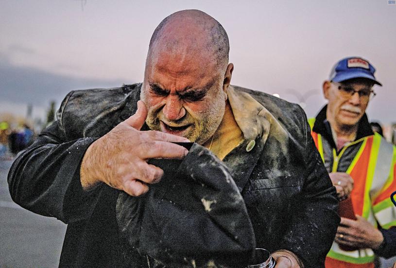 牧師包提斯塔遭胡椒彈擊中臉。Stephen Lam/三藩市紀事報/美聯社