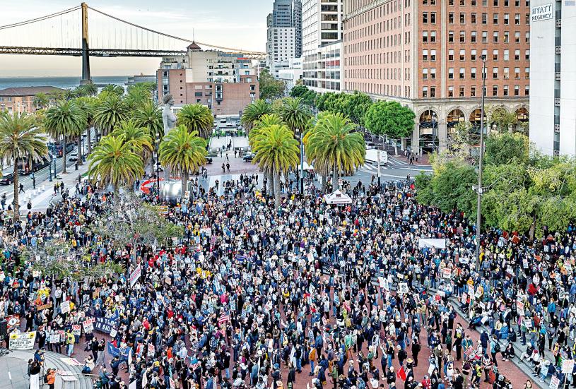 多個團體與大批民眾傍晚參加三藩市海傍大規模集會。美聯社