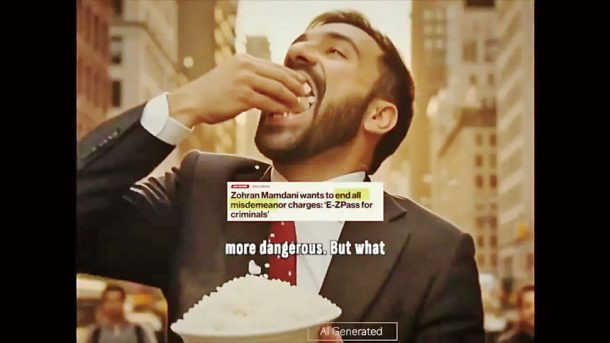 前州長柯謨市長競選團隊於22日晚在X帳號短暫發布一段AI生成影片,描繪民主黨候選人馬姆達尼(Zohran Mamdani)受到「罪犯」支持的場面,引發種族歧視指控後迅速刪除。柯謨發言人阿澤帕迪(Rich Azzopardi)稱影片為「未完成草稿」,由初級員工誤發,未經法律審查,5分鐘後撤下。