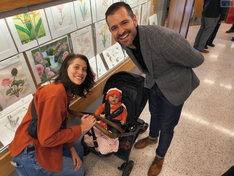 市參事李爾德偕妻女在華埠資源展上合影。記者黃偉江攝