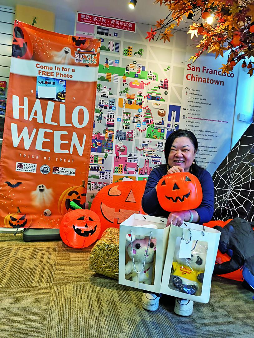 華埠訪客中心主任 Cindy Wu 說,「不要客氣,歡迎來到華埠訪客中心,品嚐各式糖果,或端坐在枯草垛上,也許能用相機為你捕捉到意想不到的蝙蝠與幽靈。」整個空間已佈置了諸如枯樹上結滿蜘蛛網、陰影中南瓜發出若隱若現怪笑的節日裝飾,營造「微驚悚又好玩」的萬聖氛圍。