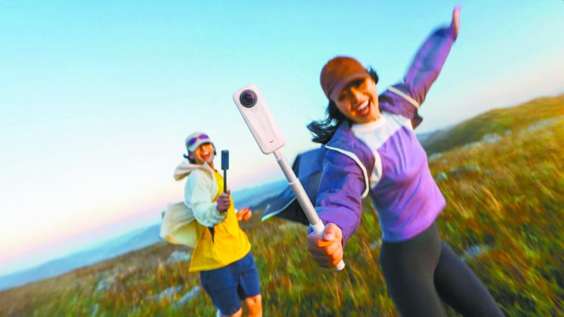 新品與大多數X5的配件相容,由於機身更輕,整套裝置在操控上更為輕巧,像X5一樣內建了防風罩,並配備雙魚眼鏡頭,可從各個角度攝錄影像。然後,你可以在Insta360應用程式中重新構圖,為觀眾呈現不同視角的拍攝內容。