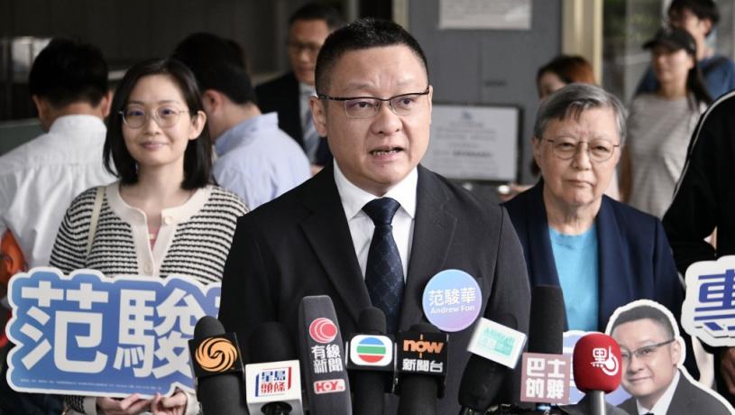 立法會選舉12月7日舉行。全國政協委員范駿華今日(1日)到政府總部報名參選選委界界別,獲母親、前立法會主席范徐麗泰、前警務處處長李明逵等人站台。范駿華表示,感謝母親以家人身份到場支持,強調參選決定並非受其鼓勵,稱「屋企人會支持屋企人自己想做嘅嘢。」他對選情有信心,但最終結果將交由選民決定。
