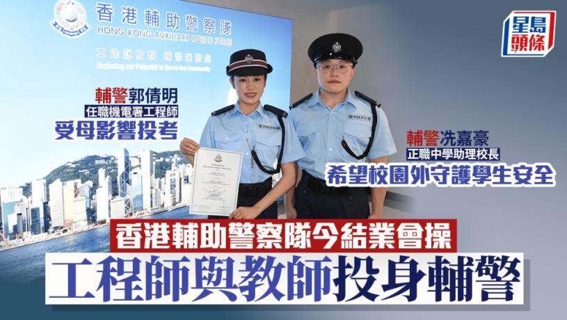 香港輔助警察隊今日(11月1日)舉行結業會操,見證新一批輔警警員畢業並正式投入警務工作。當中兩位學員分享投考輔警的心路歷程,均期望以「雙重身份」回饋社會。其中任職機電工程署工程師於工作中感受到警察的專業,加上曾是輔警的母親影響而投考,盼透過工程專業與輔警經驗相輔相成,提升警務效率;另一名中學助理校長本著「育人」初心,結合教師與輔警兩個角色,引導年輕人守法成長。